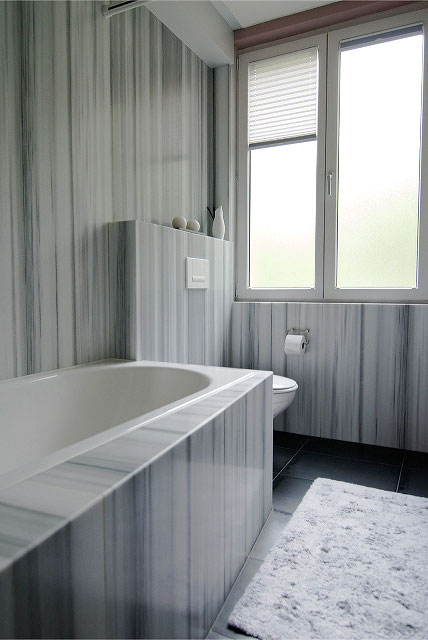 Salle de bain Projet: Vue des Alpes, Bienne Matériel: Marbre Striato Olimpico